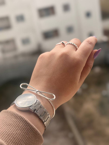 بنگل استیل مینیمال طرح دو گره رنگ نقره‌ای ضد حساسیت