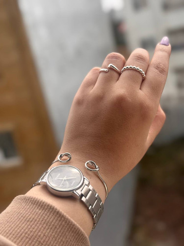 بنگل استیل مینیمال طرح موج رنگ نقره‌ای ضد حساسیت