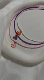 گردنبند منجوقی دستساز – صورتی، بنفش و سفید با قلب نارنجی