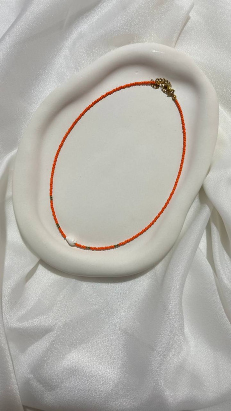 گردنبند منجوقی نارنجی با پلاک گوشماهی 🐚🧡