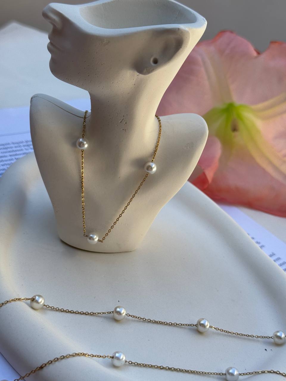 ست سه تکه مرواریدی زنجیر طلایی