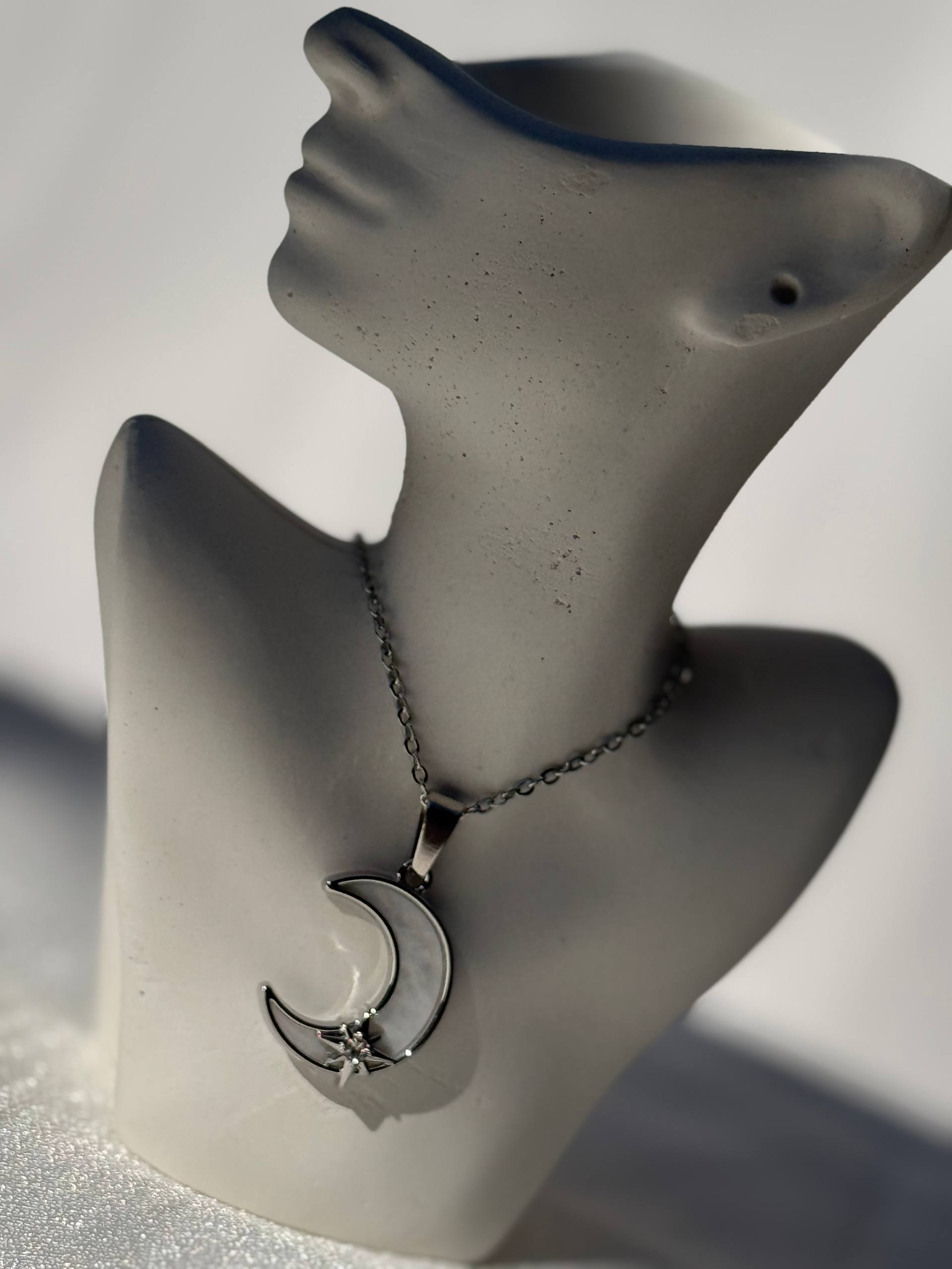 ویژگیهای گردنبند ماه صدفی ستارهدار استیل استیل ضدحساسیت و رنگ ثابت آویز ماه صدفی با ستاره براق سبک، ظریف و مناسب استفاده روزانه مقاوم در برابر آب و کدر شدن مناسب هدیه با ظاهر شیک