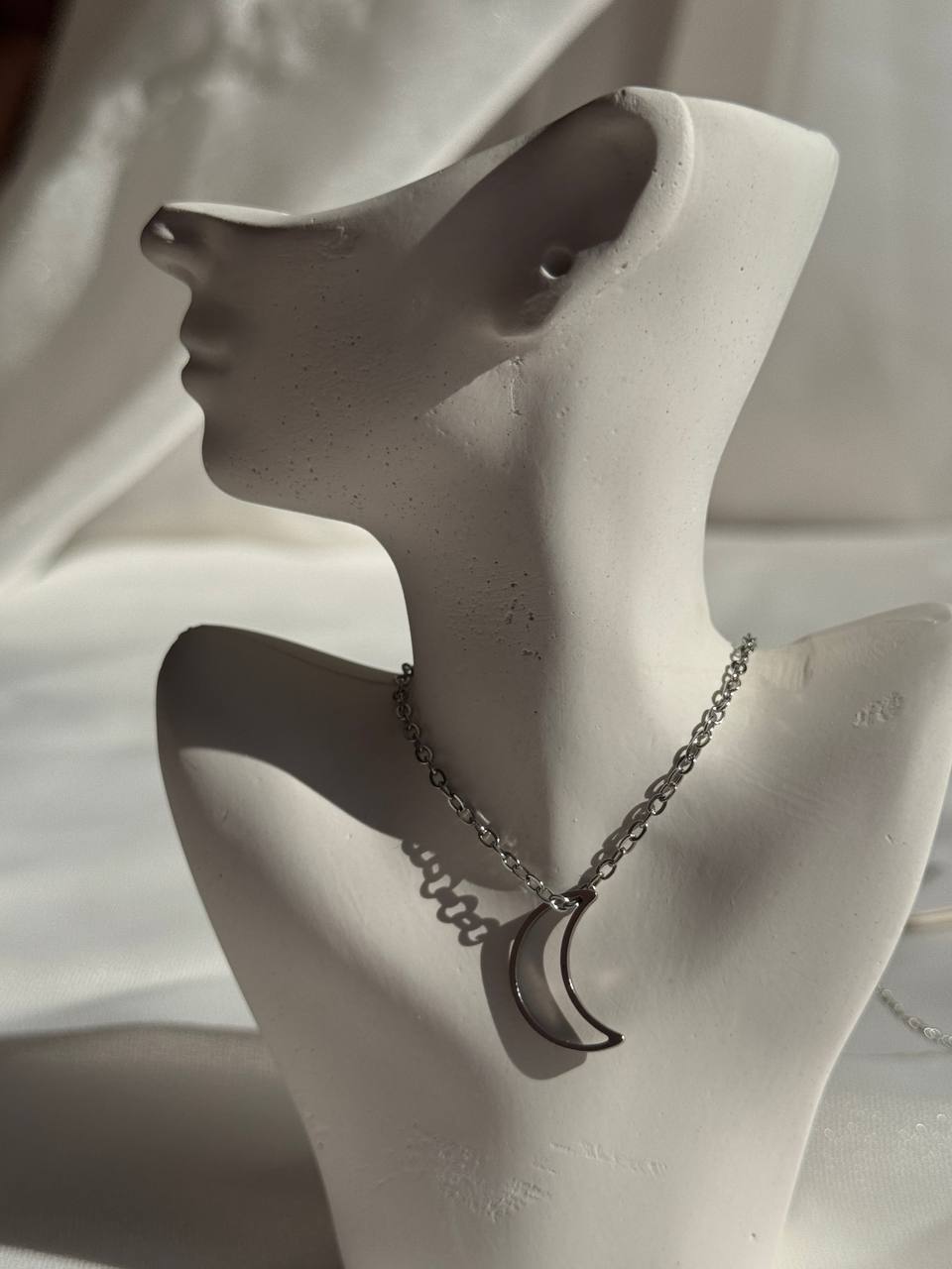 جنس استیل ضدحساسیت و رنگ ثابت آویز ماه شیک و ظریف زنجیر ۴۵ سانت، مناسب استفاده روزانه سبک، مقاوم و مناسب هدیه