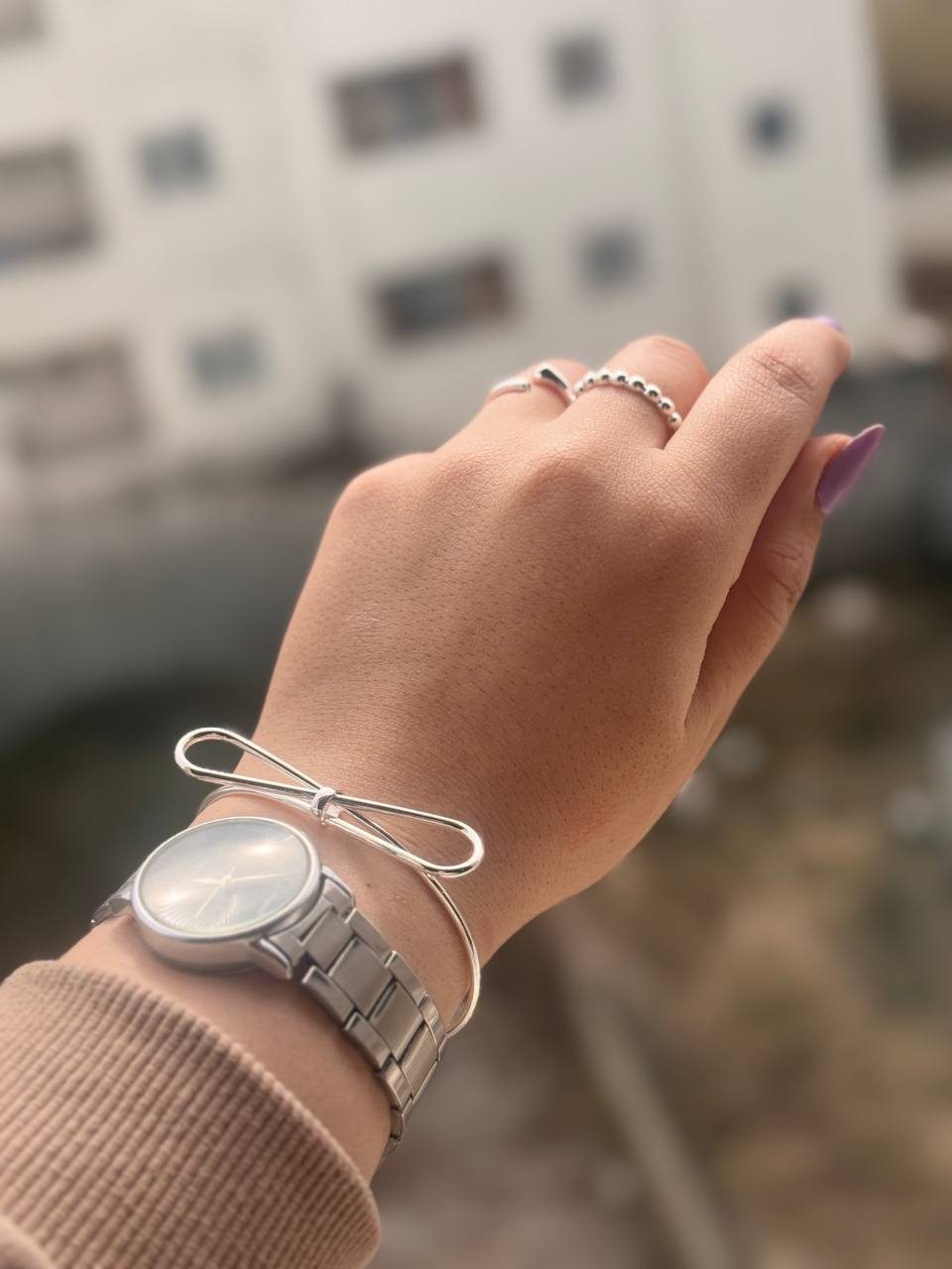 بنگل استیل مینیمال طرح موج رنگ نقرهای ضد حساسیت