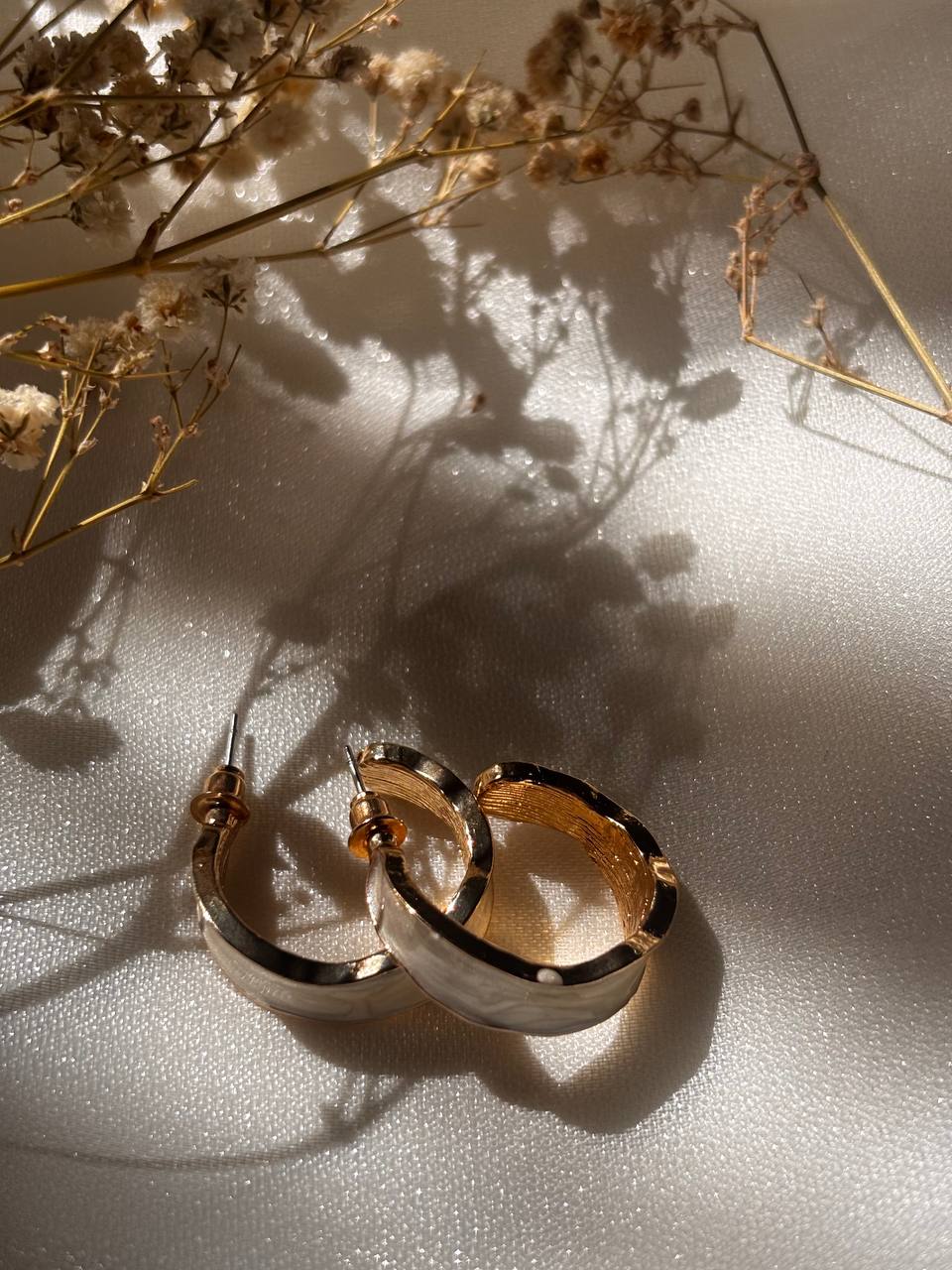 ناموجودگوشواره موج طلایی با رویه صدفی